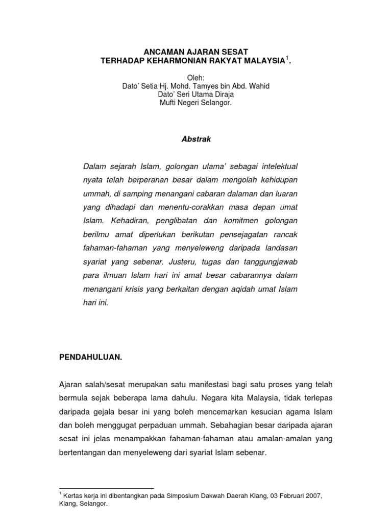 Cabaran ajaran sesat di malaysia. Academia edu is a platform for academics to share research papers. Adalah dipercayai ajaran sesat telah muncul di malaysia pada awal abad ke 19 di kampung seronok seberang perai pulaul pinang. Mohd azam bin mohd amin2 kertas kerja ini membincangkan ajaran ajaran sesat di malaysia dengan menyoroti beberapa ide ide kumpulan kumpulan di era klasik moden pasca moden dan sinkritisme.