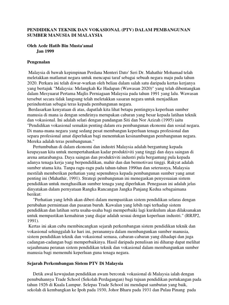 Pdf Tevt Di Malaysia Cabaran Dan Harapan