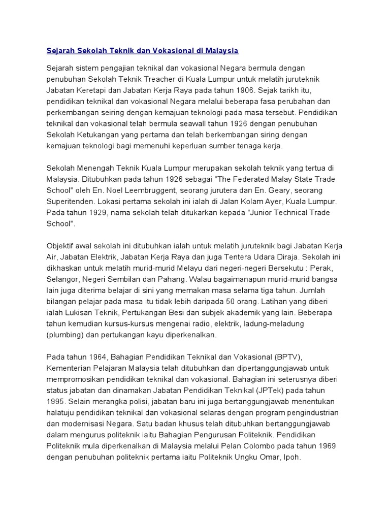 Sejarah Sekolah Teknik Dan Vokasional Di Malaysia Isl