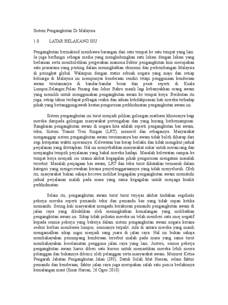Doc Masalah Sistem Pengangkutan Awam Di Negara Kita Dan Cara Mengatasinya Ellis Suraya Academia Edu
